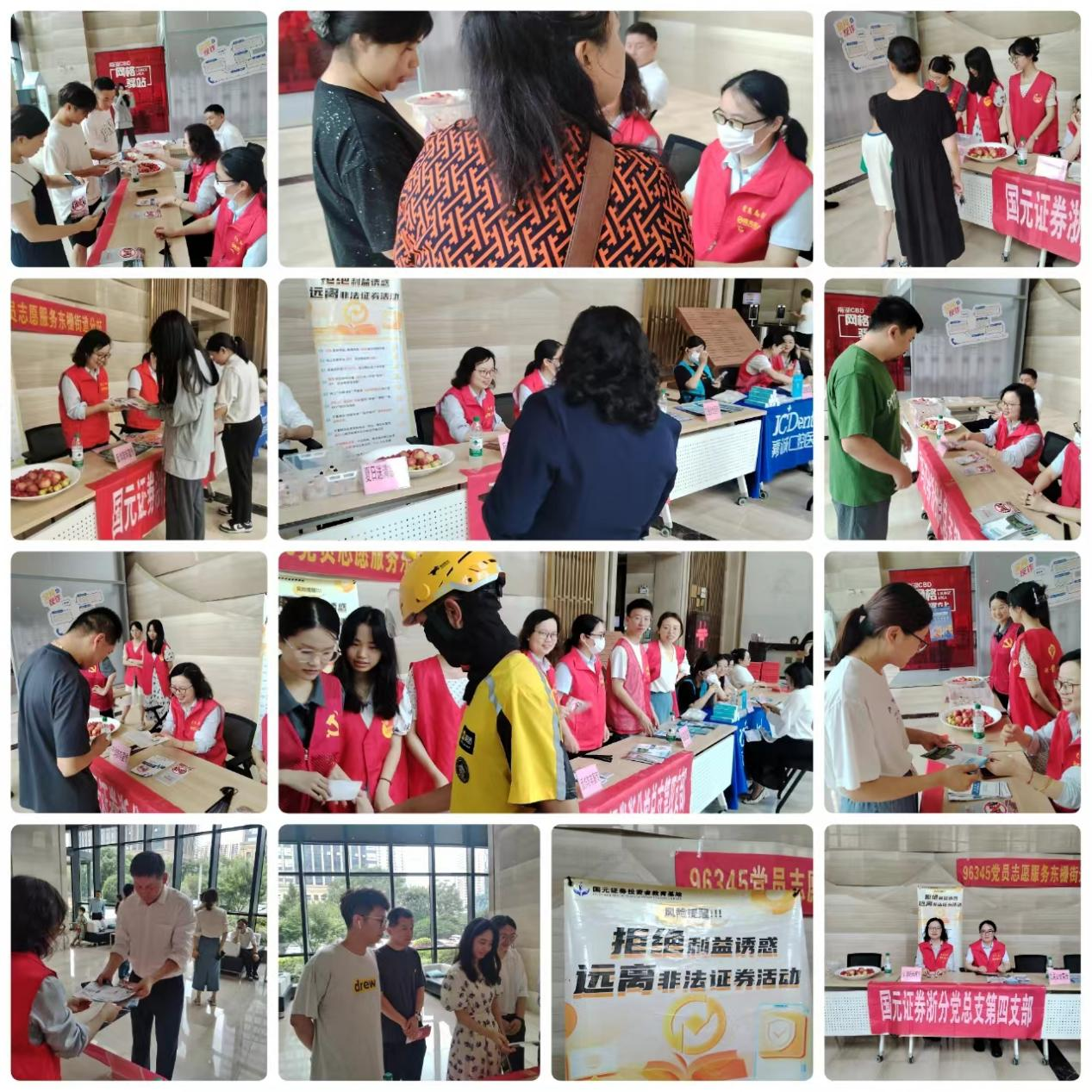 本次活动,国元证券投教基地联合嘉兴竹园路营业部以“抵制非法证券期货基金活动”和“宣传反诈知识”为主题,向南湖区CBD楼宇的广大企业职工、社区群众宣传了一系列的非法证券期货基金活动和反诈骗宣传宣讲,耐心的回答了居民对于防非和反诈的相关问题,也向居民群众讲了一些关于防非和反诈的案例,本次宣传活动中,我部的工作人员还向大家分发了相关的宣传折页,炎炎夏日还准备一些水果点心,为奋斗在一线的广大在职人员提供一份清凉,本次活动受到了社区群众及楼宇单位的好评!