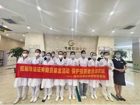为切实保护人民群众财产安全,抵制非法证券期货基金活动,保护投资者合法权益,营造良好的资本市场发展环境,维护社会稳定,国元证券投资者教育基地携手国元证券合肥徽州大道证券营业部联合举办了“抵制非法证券期货基金活动 保护投资者合法权益”投资者教育活动走进国宾健康体检中心。