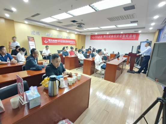 国元证券投教基地联合亳州分公司于5月19日下午在营业部四楼电教室组织开展“推动高质量发展 提振投资者信心”为主题的投教工作宣传活动,由分公司投顾老师刘虎成、通过股民沙龙的形式向营业部现场客户宣传讲解,金融产品的风险特性;识别风险小妙招等;引导投资者选择合法机构,远离非法主体,坚持理性投资,谨防上当受骗进一步树立理性投资、价值投资、长期投资的理念,拒绝利益诱惑。