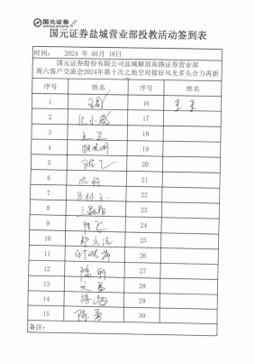 根据公司投资者教育活动的相关要求,为了进一步营造保护中小投资者合法权益的社会氛围,国元证券投教基地与盐城解放南路证券营业部通过每周开展客户交流会,组织了一系列的投资者教育宣传,切实保护投资者合法权益。