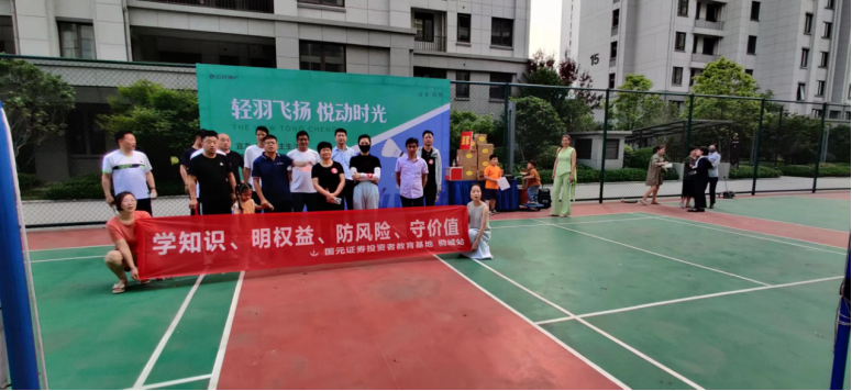 根据安徽省证券期货业协会及公司要求,国元证券投教基地联合桐城龙眠中路营业部于2024年5月25日来到宜龙璟悦小区,联合小区物业,举办了一场羽毛球比赛活动。以“学知识、明权益、防风险、守价值”为主题,向小区业主宣传相关金融知识。现场活动覆盖20余人,并取得了较好的宣传效果。